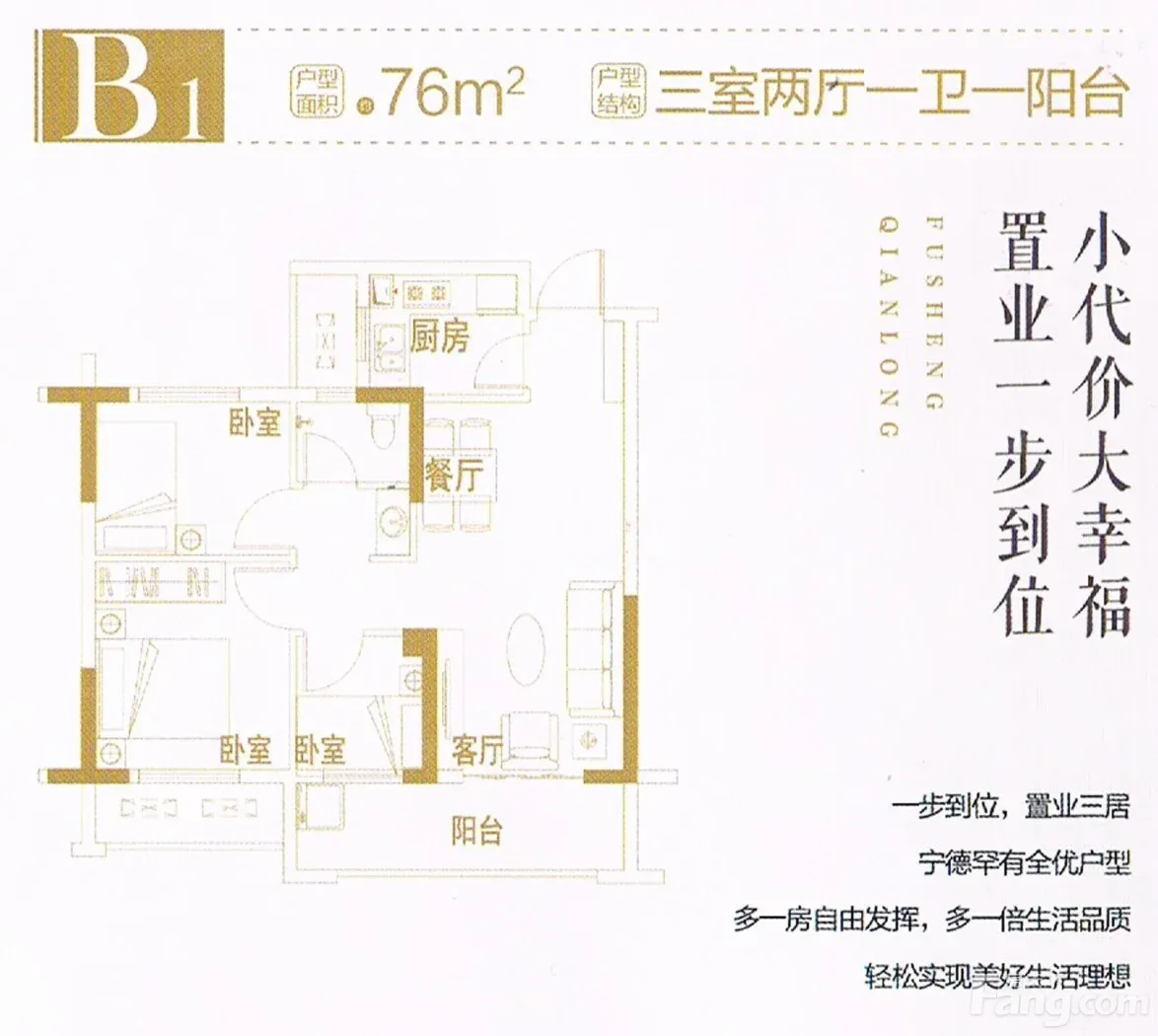 蕉城 福晟钱隆樽品 3室1厅 76.00㎡ 70万