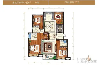 伊泰华府云玺户型主要有163平-223平的户型方正,卧室朝南的四居 、123平-159平的南北通透,户型方正的三居 。