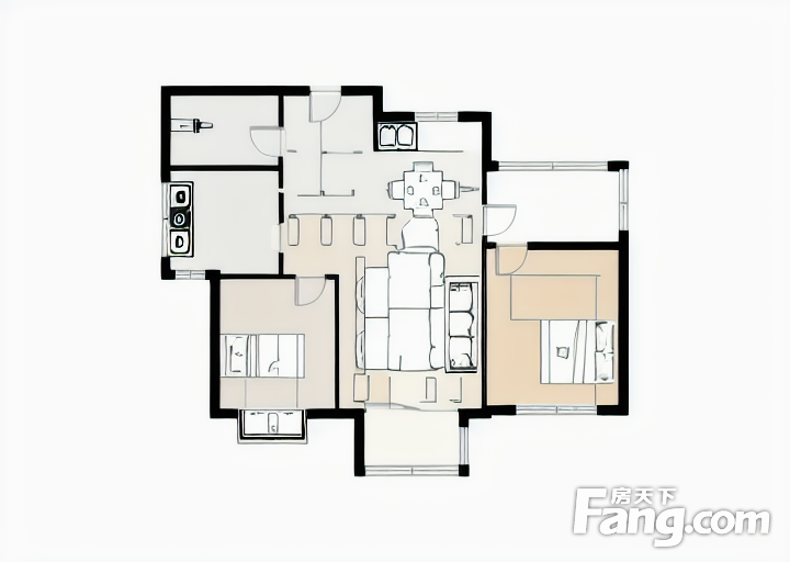 户型齐全,主打户型方正,明厨,客厅朝南,主卧朝南二居