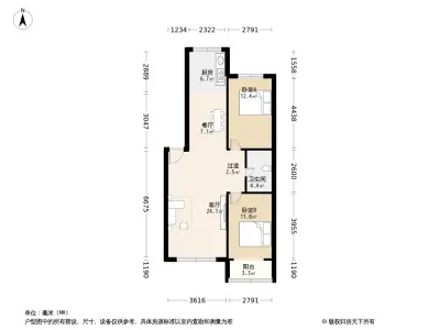奈伦公寓 2室2厅 南 北