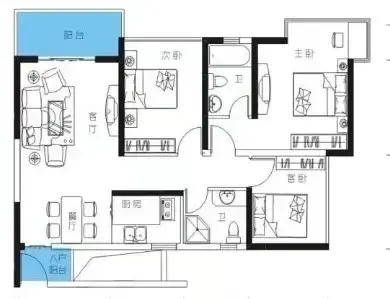 天筑米兰户型主要有75平-90平的户型方正,明厨,明卫,客厅朝南,全明格局的三居 、51平-89平的明卫,明厨的二居 。