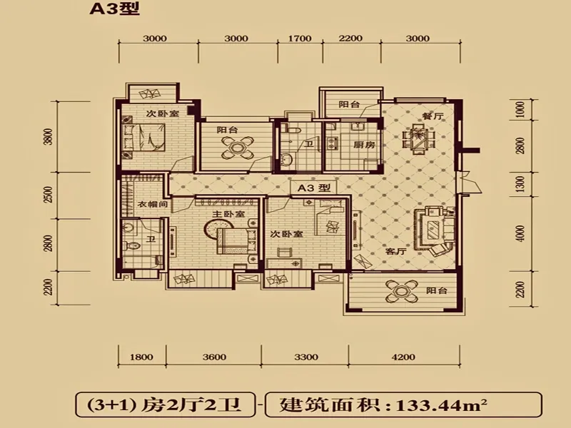 户型齐全,主打户型方正,明卫,双阳台三居