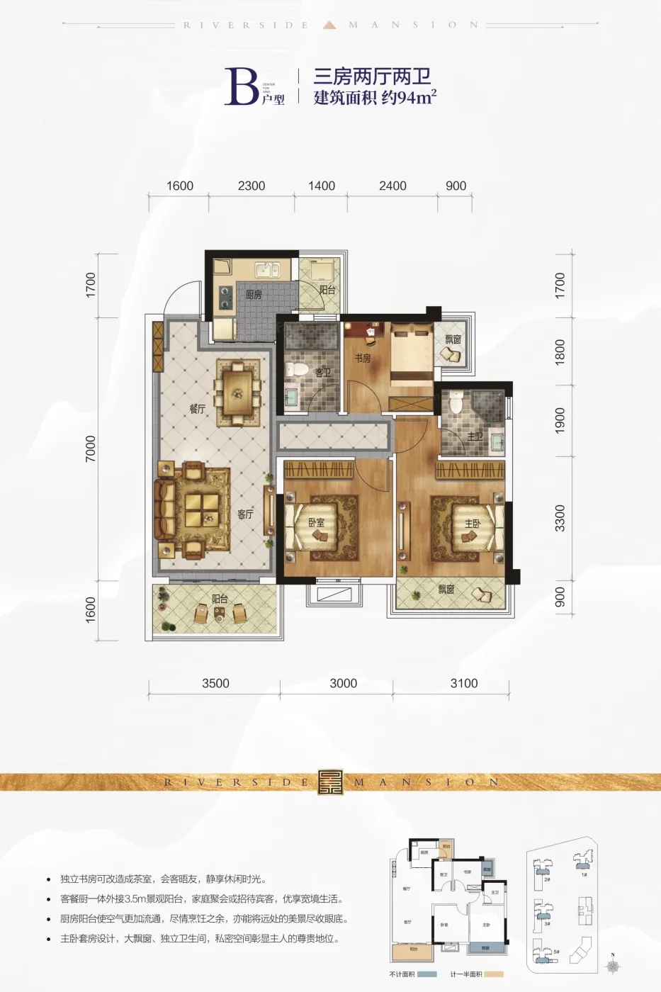 南宁云星钱隆江景户型主要有89平-94平的全明格局,户型方正的三居 、107平-107平的全明格局,户型方正的四居 。