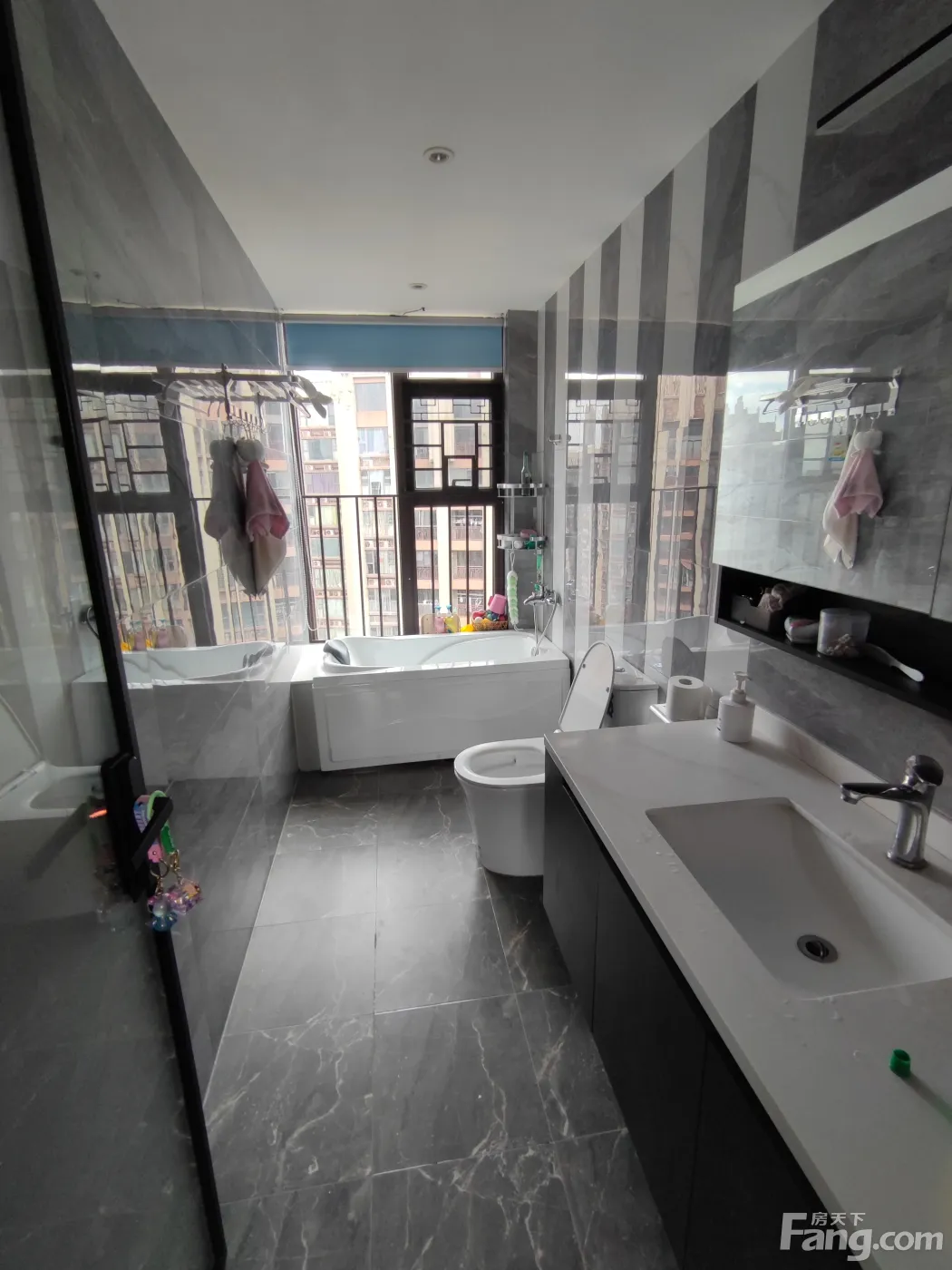 复式楼中楼,两层层高一致。两个客厅、四个卧室、两个衣帽间、三个卫生间、一个书房、一个厨房、两个大阳台、一个生活阳台。房产证148.29平米,实际使用面积接近180平米。