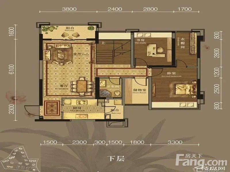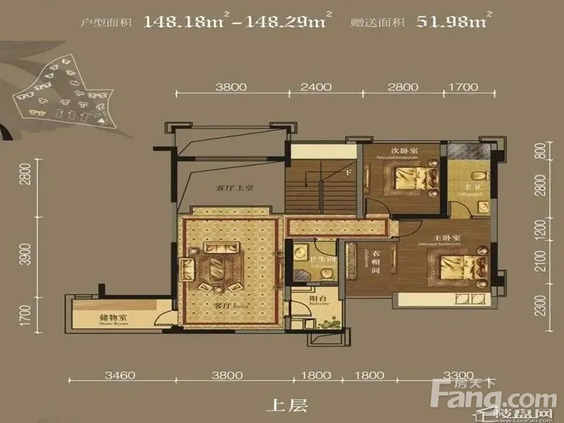 美泉1612 4室2厅3卫3阳台复式使用面积接近180平米