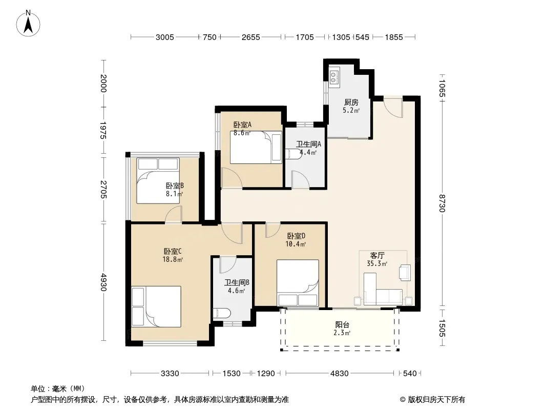 融创九棠府116平米4房2厅2卫