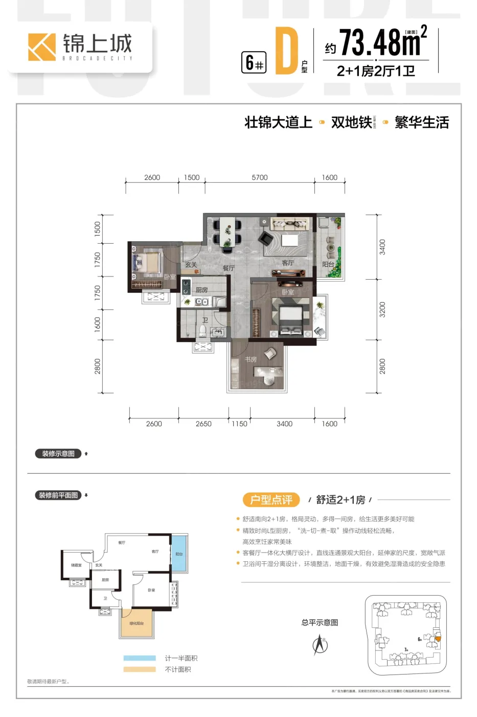 江南 锦上城自装 3室2厅 73.48㎡ 60万,