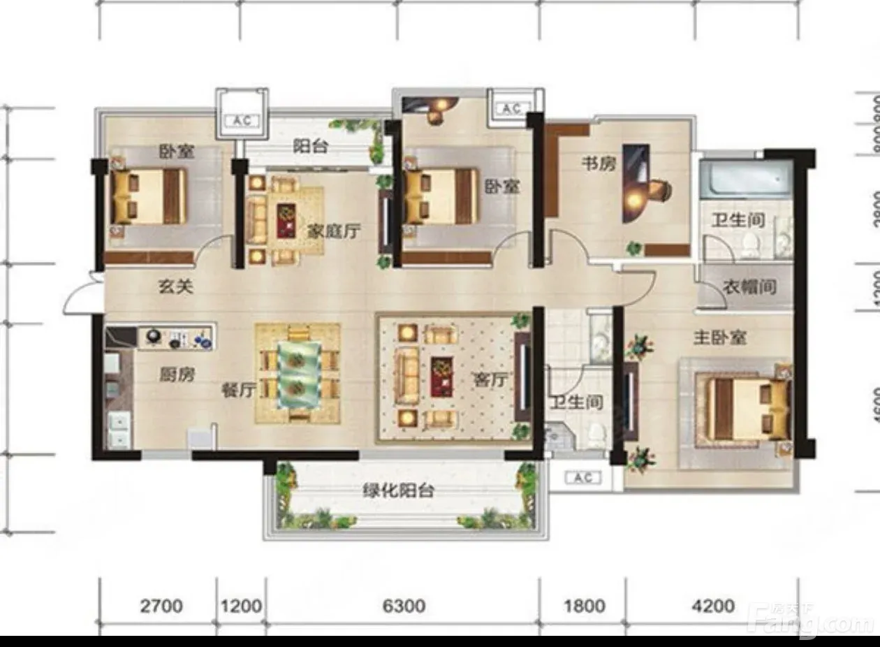 户型齐全,主打主卧带卫,户型方正,双阳台三居