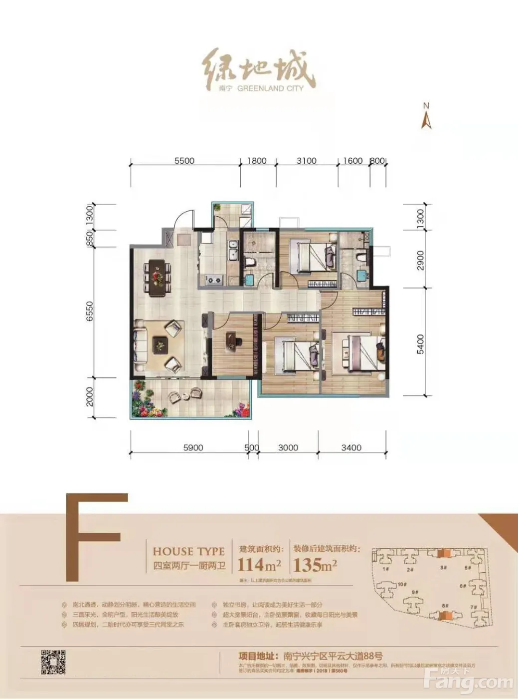 兴宁 南宁绿地城 4室1厅 114.35㎡ 60万