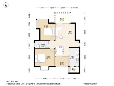 房子户型方正,采光好,无遮挡。公摊小,赠送面积多