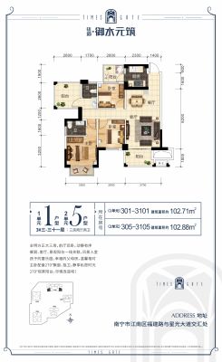 福建园地铁口3房2卫1.05万单价朝南东边套