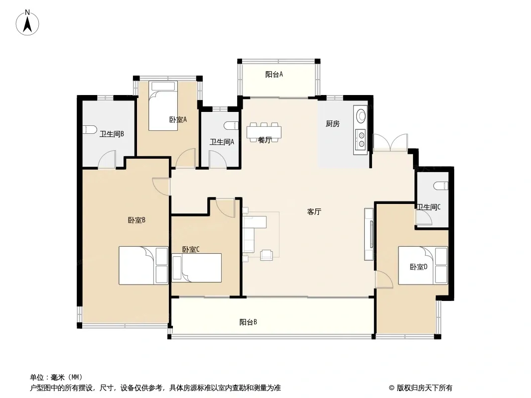 户型齐全,主打南北通透,全明格局,客厅朝南,三开间朝南,大面宽阳台四居