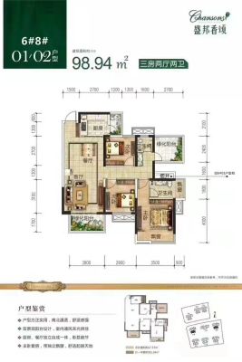 盛邦香颂户型主要有99平-115平的户型方正,明卫,双卧朝南,主卧朝南的四居 、116平-118平的明厨,明卫,双阳台,双卧朝南的五居 。