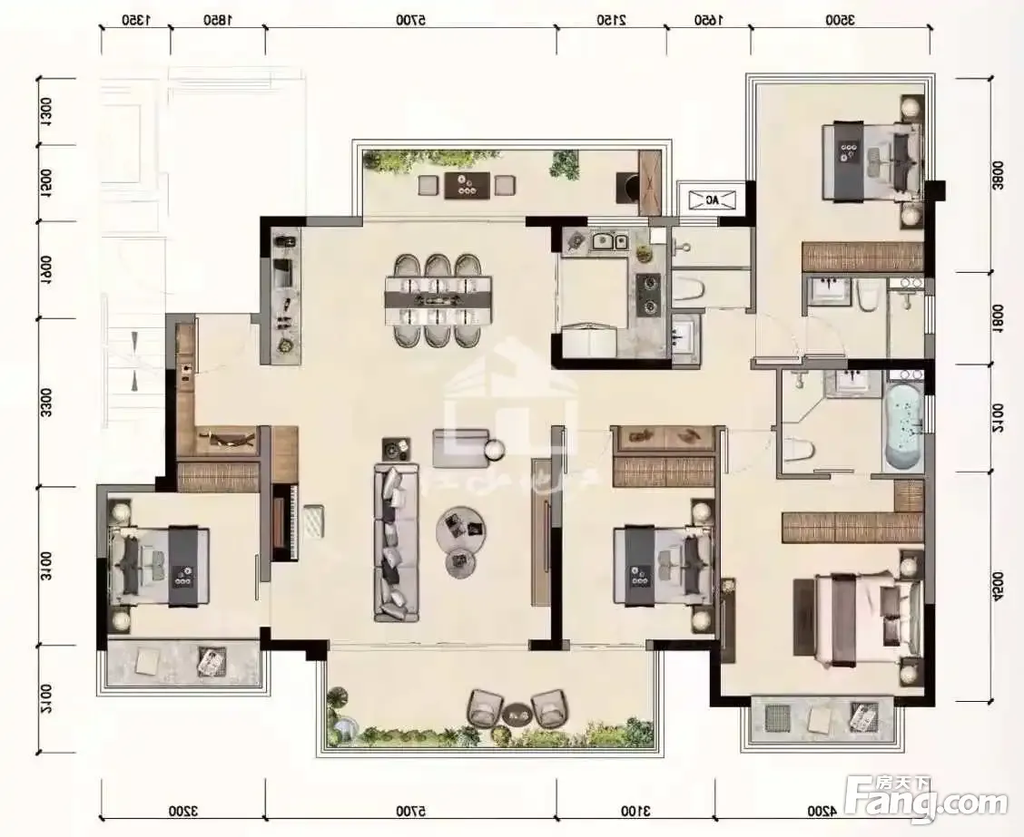 户型齐全,主打户型方正,采光充足,双阳台四居