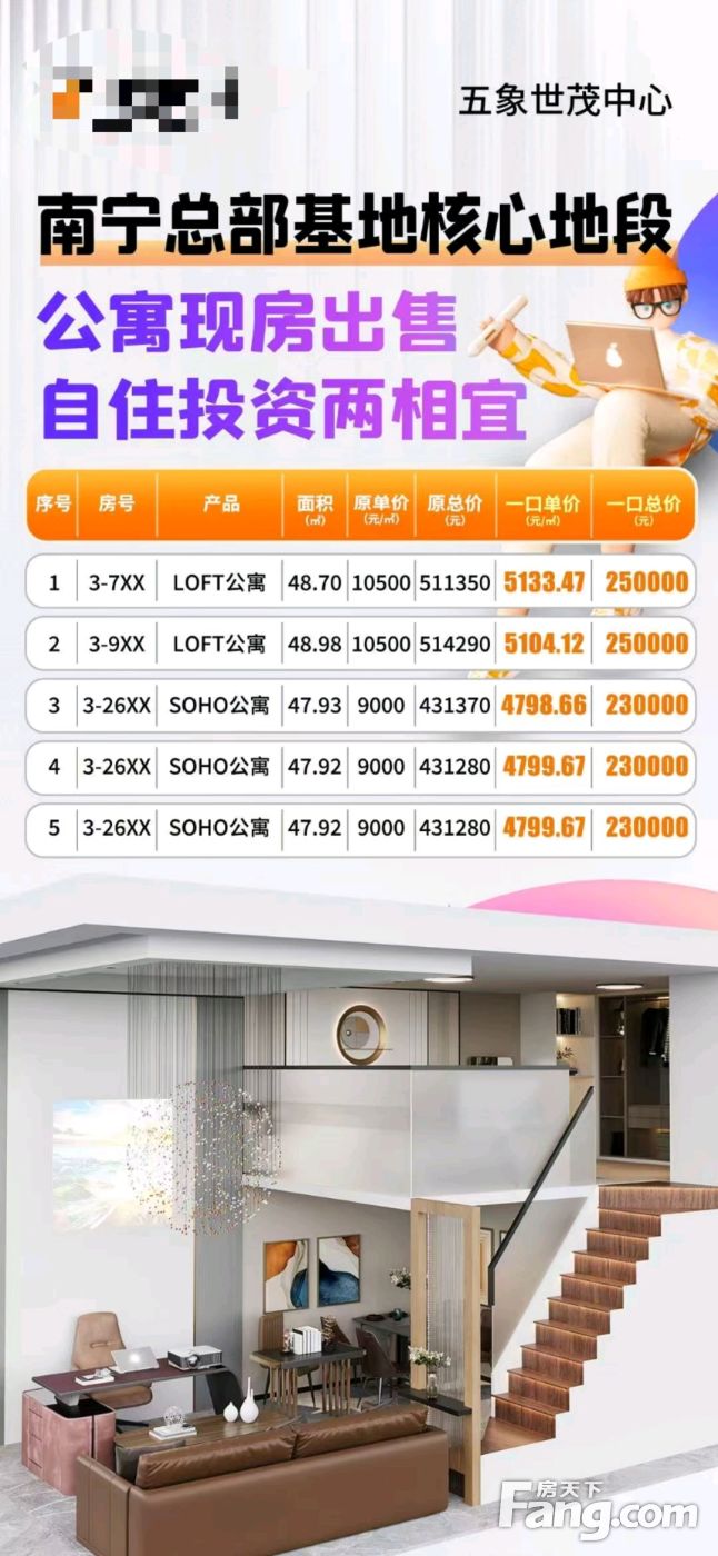世贸中心公寓单价4700元面积楼层任选