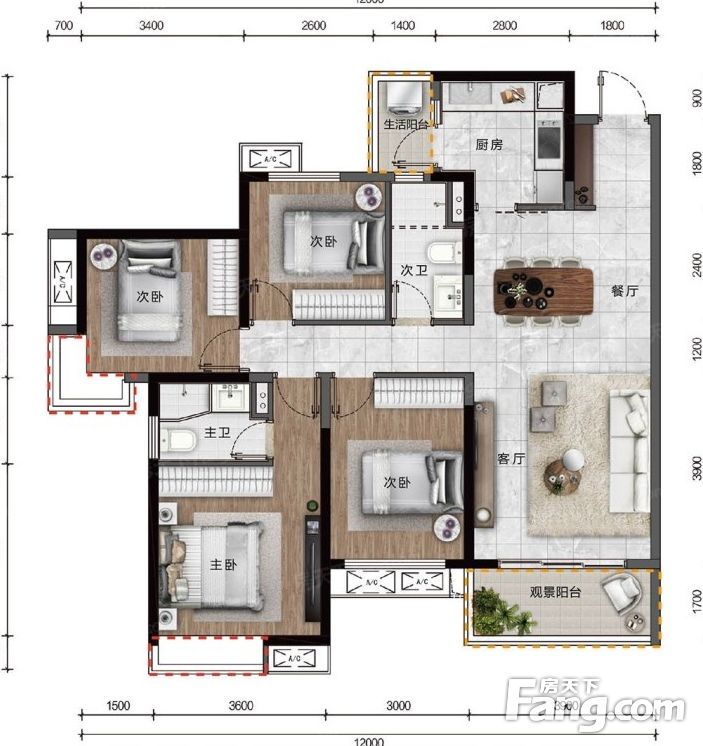 户型齐全,主打南北通透,双阳台四居
