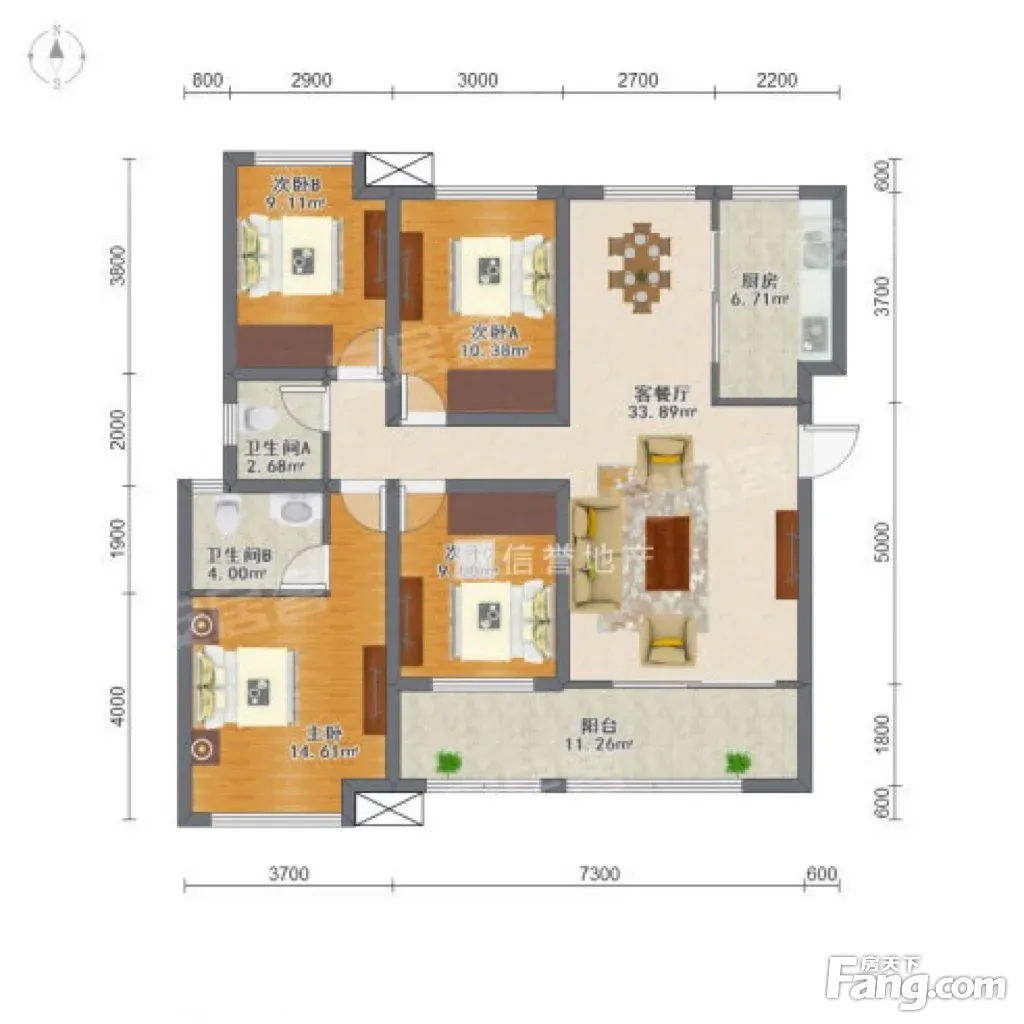 户型齐全,主打户型方正,双阳台三居