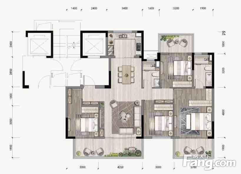 户型齐全,主打观景飘窗,大面宽阳台四居