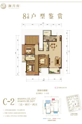 澜月府户型主要有100平-144平的户型方正,明卫,明厨,客厅朝南,全明格局的四居 、87平-128平的户型方正,明卫,明厨,主卧朝南的三居 、127平-144平的全明格局,户型方正,带衣帽间,大面宽阳台的五居 。