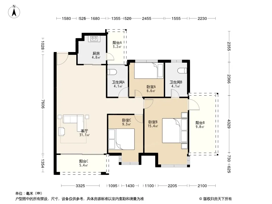 *获取完整户型报告,同时会有免费语音讲解服务