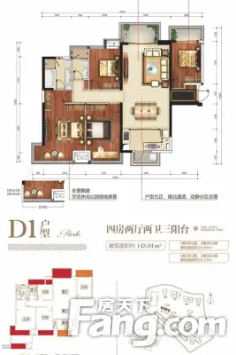 户型齐全,主打南北通透,主卧带卫四居