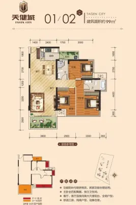 单价8字头 买西大万达广场地铁口 带车位现房现证天健城三房