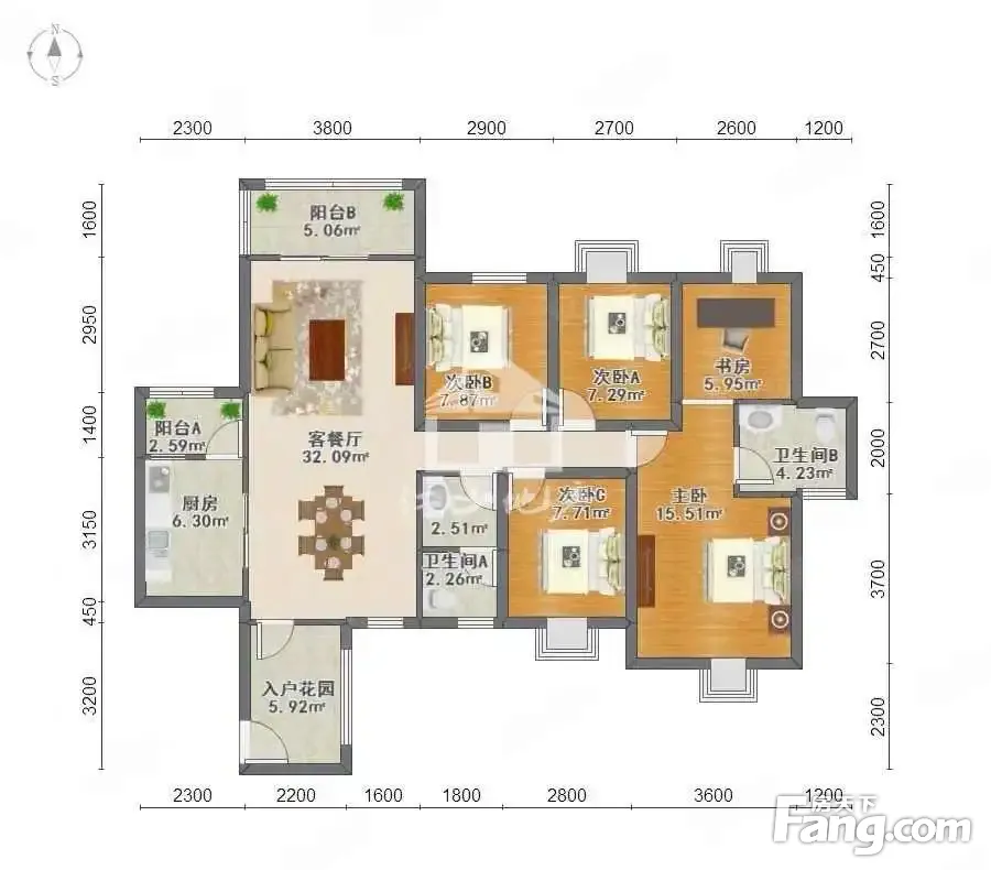 1.房子户型方正,格局安排合理。 2.房子精装修,拎包可入住。