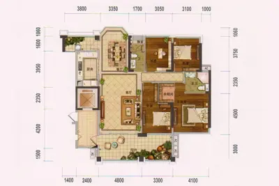 户型齐全,主打户型方正,主卧带卫四居