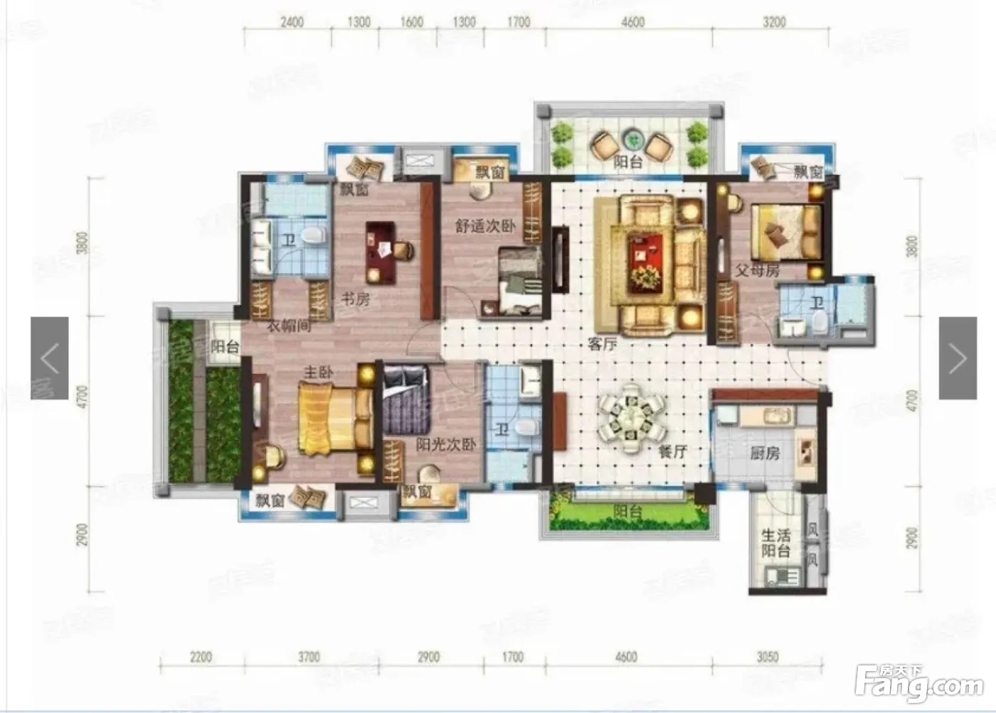 户型齐全,主打户型方正,明厨,明卫,主卧朝南五居