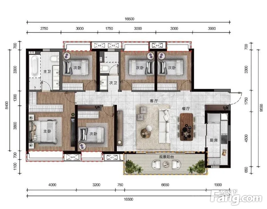 户型齐全,主打南北通透,双阳台四居
