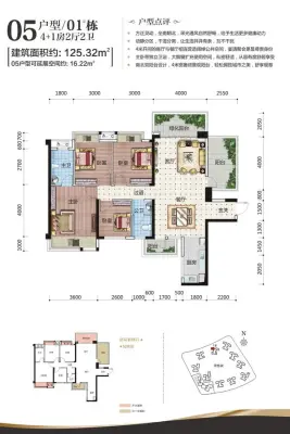 户型齐全,主打南北通透,户型方正,双阳台四居