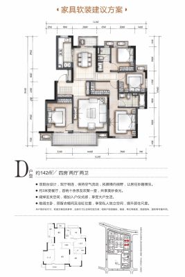 户型齐全,主打南北通透,户型方正,双阳台四居