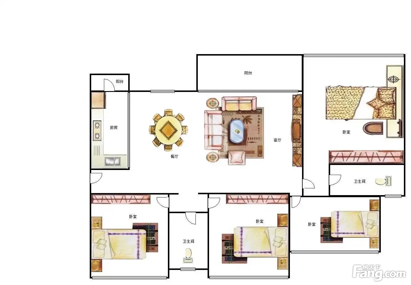 户型齐全,主打主卧带卫,户型方正,双阳台三居