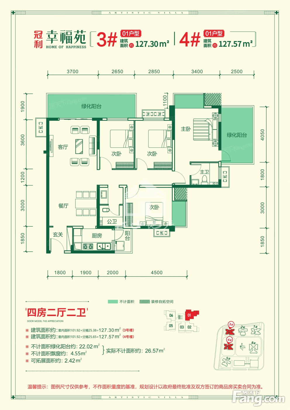 户型齐全,主打户型方正,动静分离,高附赠空间三居