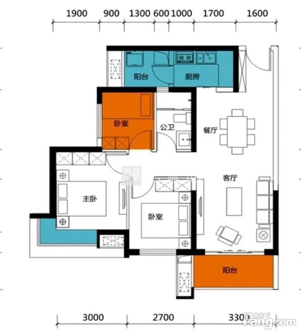户型齐全,主打户型方正,明厨,明卫,主卧朝南三居