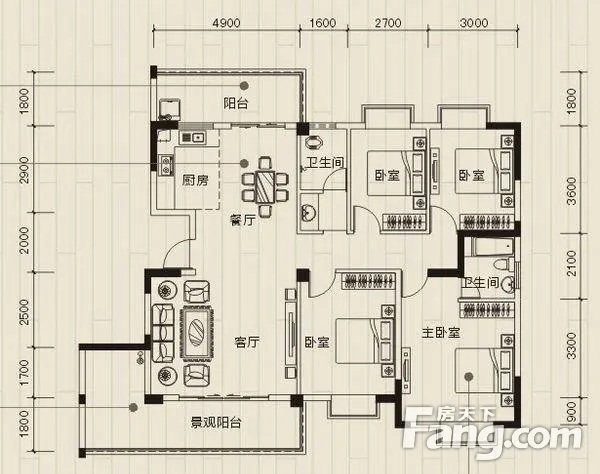 户型齐全,主打户型方正,明厨,明卫三居