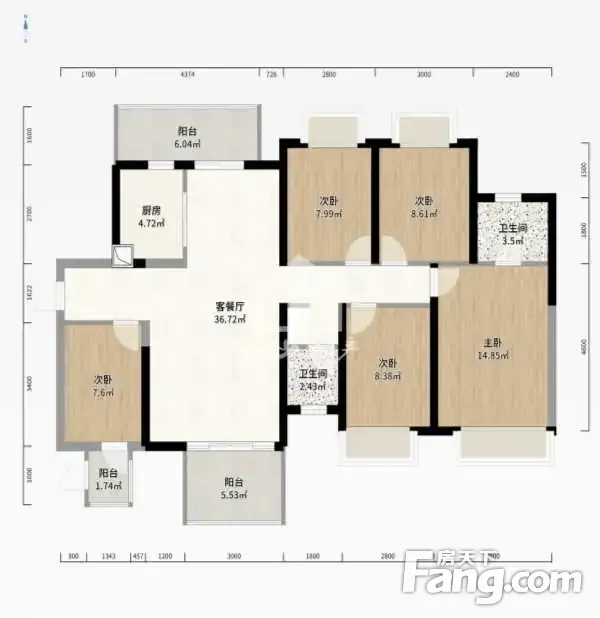 户型齐全,主打南北通透,双阳台四居