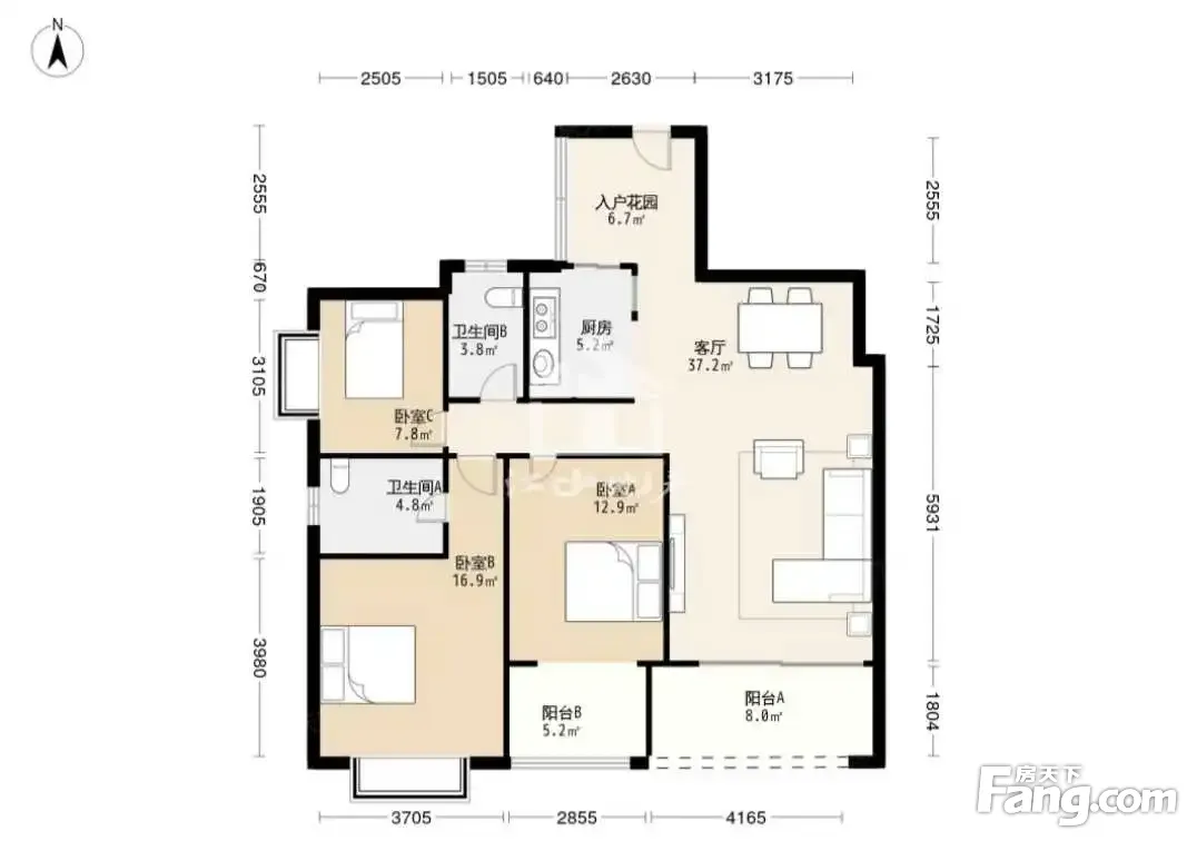 户型齐全,主打明卫,客厅朝南三居