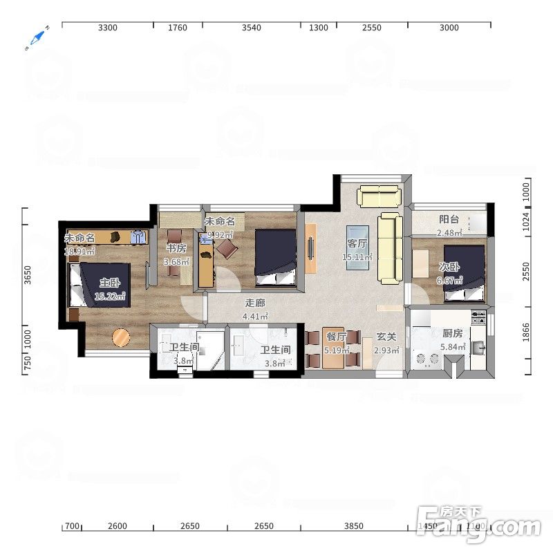 户型齐全,主打明卫,明厨,独立衣帽间,客厅朝南,全明格局,双卧朝南,主卧朝南三居