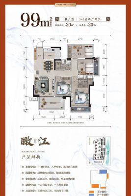 荣和观江墅户型主要有99平-143平的客厅朝南,主卧朝南的四居 、75平-75平的户型方正,主卧朝南的三居 。
