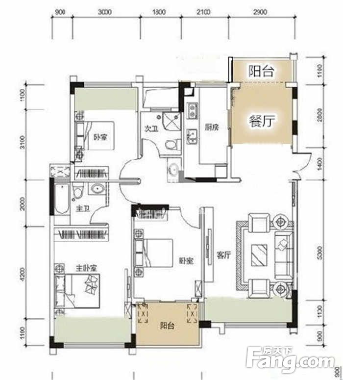 户型齐全,主打户型方正,明厨,明卫,客厅朝南,双卧朝南三居