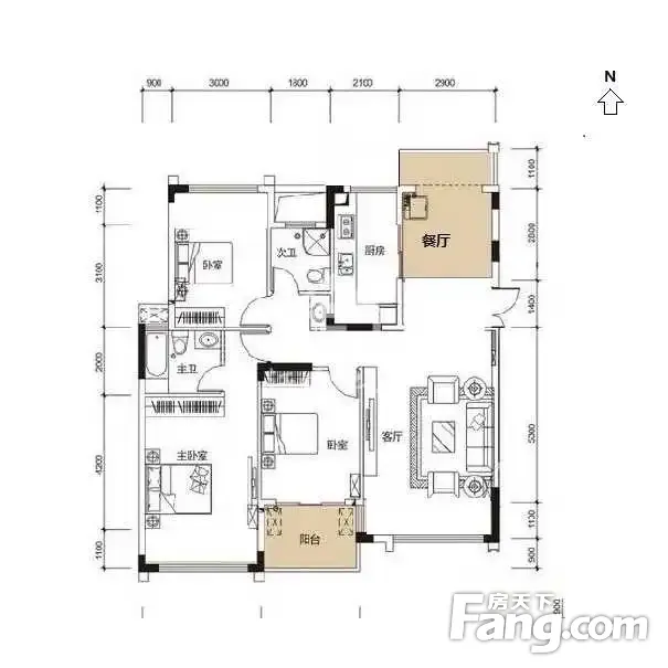 户型齐全,主打户型方正,明厨,明卫,客厅朝南,双卧朝南三居