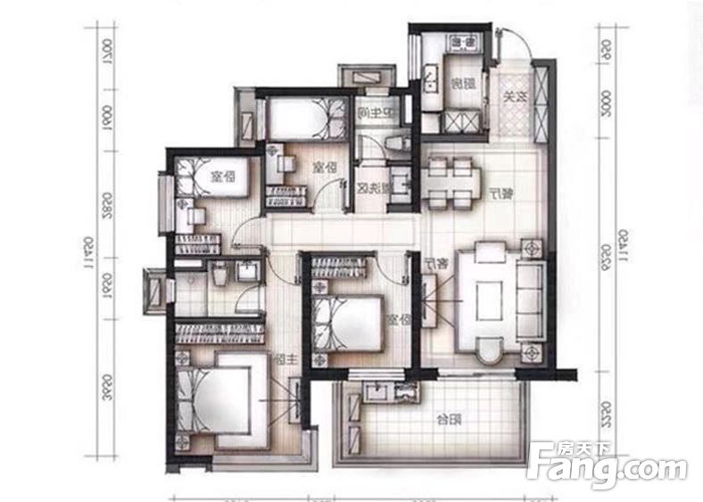 户型齐全,主打户型方正,主卧带卫四居