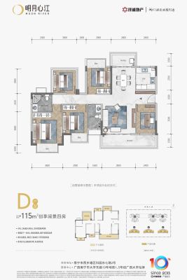 明月心江户型主要有80平-91平的南北通透,全明格局的三居 、97平-97平的南北通透,全明格局的四居 、115平-115平的南北通透,全明格局的五居 。