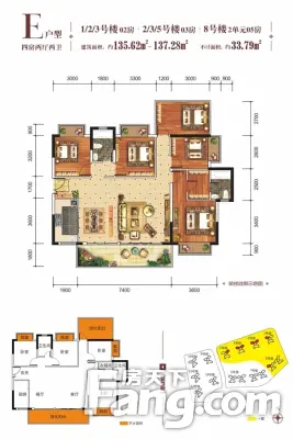 户型齐全,主打户型方正,主卧带卫四居