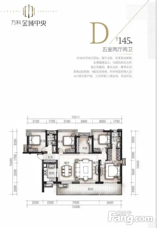 万科金域中央户型主要有108平-175平的户型方正,主卧带卫的四居 、97平-102平的户型方正,主卧带卫的三居 、144平-145平的主卧带卫,双阳台的五居 。