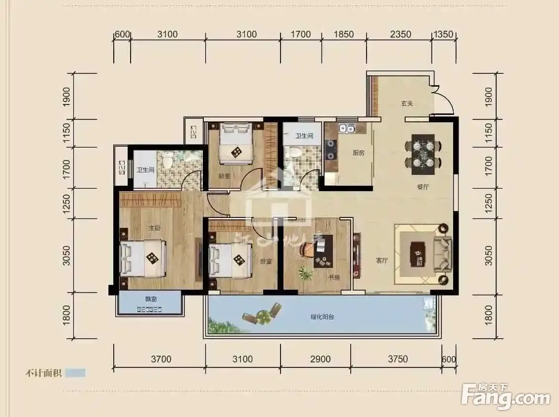 户型齐全,主打户型方正,采光充足,带露台四居