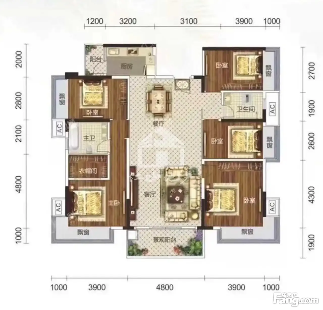 户型齐全,主打全明格局,户型方正,观景飘窗,卧室带阳台四居