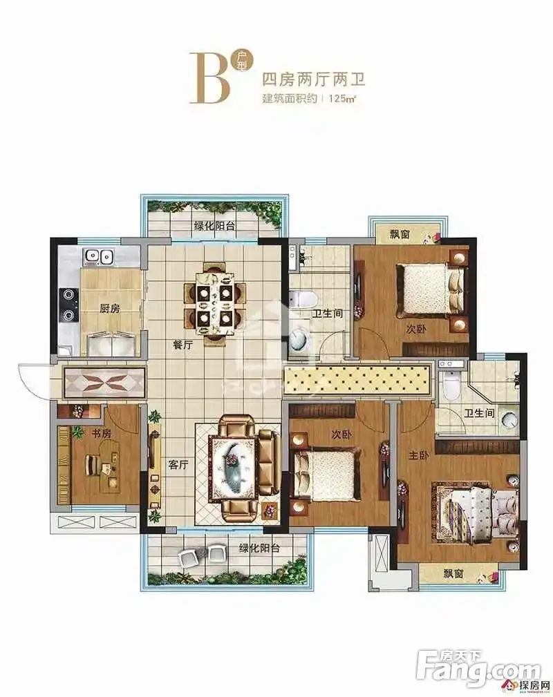 户型齐全,主打南北通透,全明格局四居