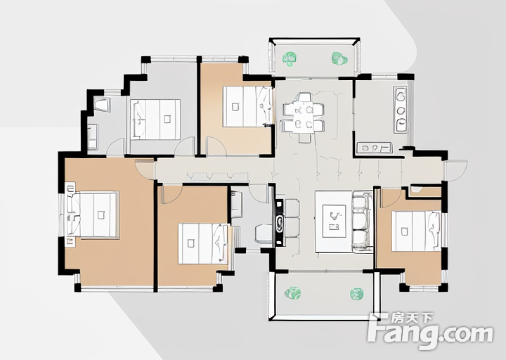户型齐全,主打南北通透,全明格局,户型方正四居